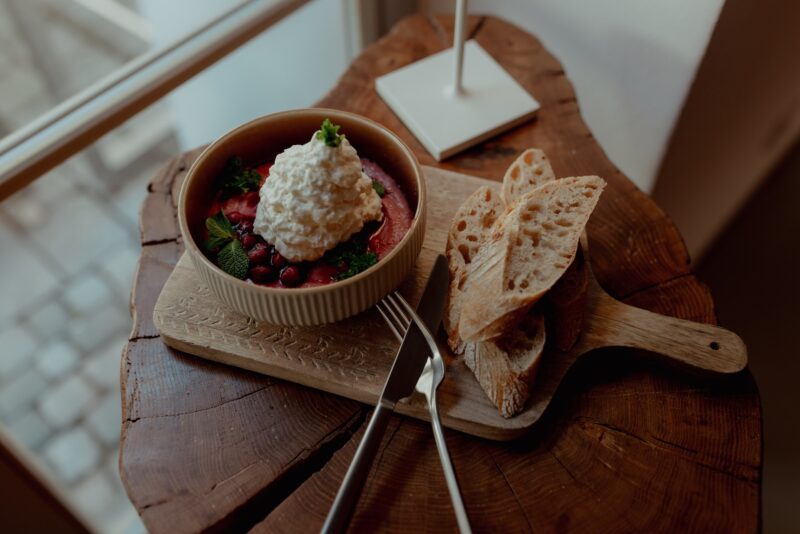 Die Traditionsmetzgerei Bär in Sulzbach-Rosenberg ist im Landkreis mittlerweile nicht nur für die Herstellung von herkömmlichen Fleisch- und Wurstwaren bekannt – sie hat sich auch auf vegane Produkte spezialisiert. Für unser veganes Frühstück verwenden wir den Aufstrich von der Metzgerei Bär, der komplett pflanzlich ist.